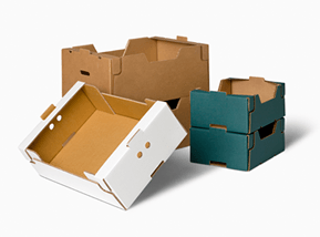 Boxes for agricultural, meat and other industries, delivered either assembled or flat.